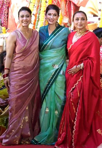 Twinkle Khanna shares smiles with Rani, Kajol at Dugra Puja festivities