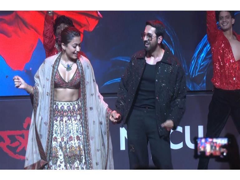 New Delhi : Bollywood stars Ayushmann Khurrana and Rashmika Mandanna treated fans to their amazing dance moves on 'Tum Mere Na Huye' from the upcoming film 'Thamma'. The duo looked stunning in their glamorous attire, with Khurrana opting for all black while Mandanna donned traditional wear. The makers also suprised the audience by showing twenty minutes of the film.