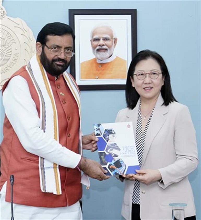 On this occasion, Tesla Senior Director Isabelle Fan invited the Chief Minister to be the Chief Guest at the inauguration of India’s first integrated Tesla Center, scheduled for November 27 in Gurugram. The center will house an experience center, delivery center, service center, office space and supercharging station within a single campus. The Chief Minister also presented Ms. Isabelle Fan with a copy of the Bhagavad Gita.