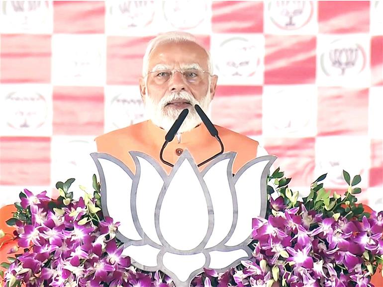 Aurangabad : Prime Minister Narendra Modi sounding the poll bugle in Bihar's Aurangabad on Friday, took a sarcastic jab at the Opposition's 'rift-ridden' Mahagathbandhan alliance claiming that the Congress "does not have faith" in its ally RJD's manifesto, which he said was "a packet of lies".