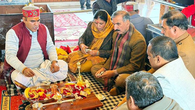 SHIMLA; Chief Minister Thakur Sukhvinder Singh Sukhu along with his wife Kamlesh Thakur, who is also MLA from Dehra assembly constituency, visited the Tara Devi temple near Shoghi to pay obeisance and seek blessings of the divine Goddess. They also prayed for peace, happiness and prosperity for the people of the State.