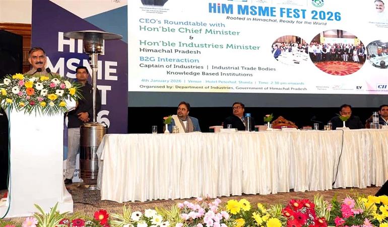 SHIMLA : Chief Minister Thakur Sukhvinder Singh Sukhu today interacted with CEOs and entrepreneurs from leading industries in India and abroad at Peterhoff, Shimla, as part of the three-day Him MSME Fest-2026 organized by the Industries Department. Extensive discussions were held during the conference on the expansion and promotion of industries in the state. On this occasion, the state government and entrepreneurs signed 37 Memoranda of Understanding (MoUs) for setting up enterprises worth Rs. 10,000 crore.