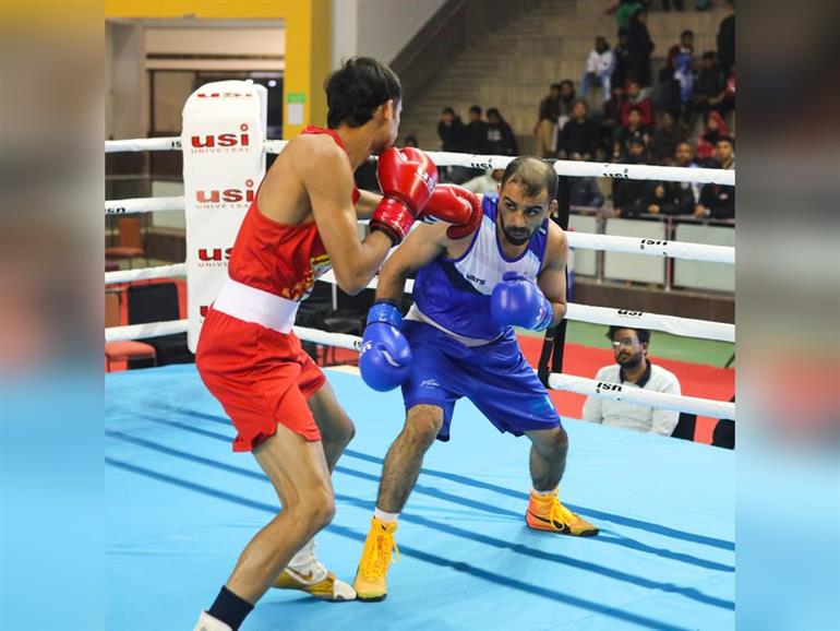 This is the first time that the men and women National Championships are being held simultaneously at the same venue and 600 boxers from across the country are participating in 10 weight categories each for men and women. Amit, playing in the Bantamweight category, dominated Usman Mohd Sultan of Bihar to get an unanimous decision.