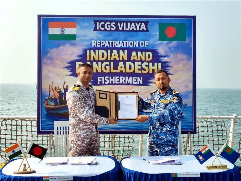 New Delhi : The Indian Coast Guard on Thursday said that the safe repatriation of 23 Indian fishermen and 2 fishing boats, and the handover of 128 Bangladeshi fishermen and 5 fishing boats to the Bangladesh Coast Guard, were facilitated.