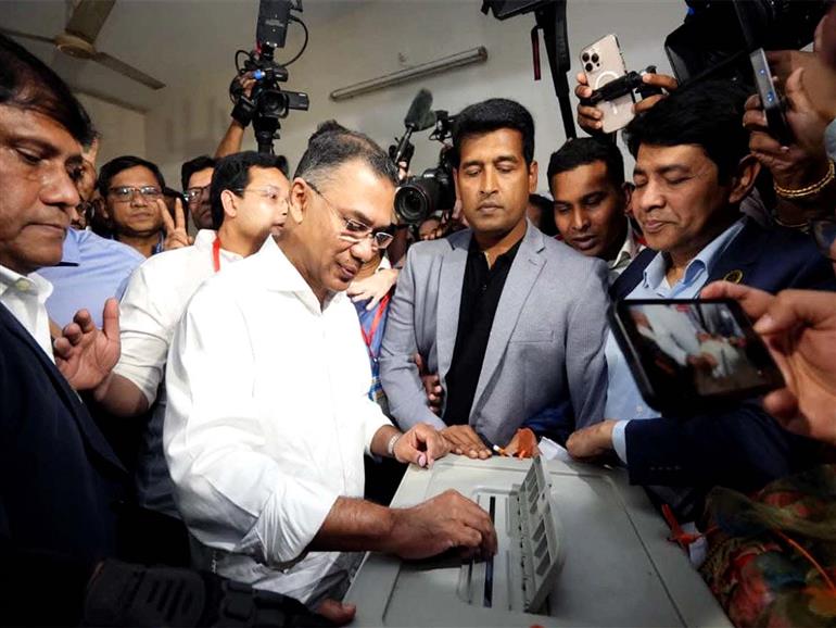 Dhaka : Bangladesh Nationalist Party (BNP) Chairperson Tarique Rahman on Thursday said that the country had been waiting for the election day to exercise their right to vote. He made the remarks after casting his vote at the Gulshan Model High School and College in Gulshan-2.