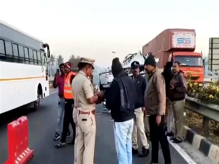 Another car became involved in the ensuing chaos, resulting in a severe chain collision involving two cars, a canter, and a motorcycle. Six occupants of the XUV car and the motorcycle rider died on the spot. The deceased are suspected to be residents of Kothanur, Bengaluru, though their identities are yet to be confirmed. The bodies have been shifted to Hoskote Government Hospital. Police have registered a case and initiated an investigation into the incident.
