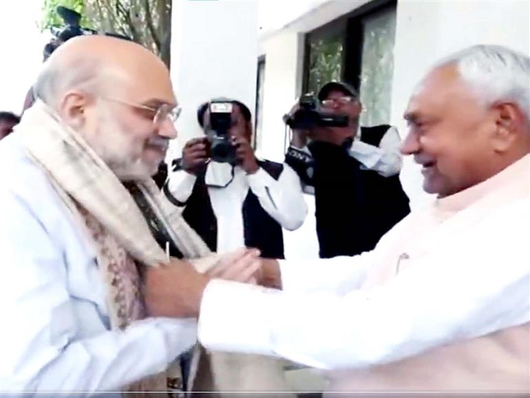 Patna : Union Home Minister Amit Shah on Thursday arrived in Patna and met with Bihar Chief Minister Nitish Kumar. The development comes following Nitish Kumar's announcement to move to Rajya Sabha after having a 20-year tenure as the CM of Bihar.