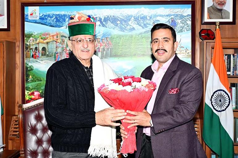 Shimla : Public Works Minister Vikramaditya Singh paid a courtesy call on Governor Kavinder Gupta at Lok Bhavan in Shimla on Saturday. During the meeting, the Minister briefed the Governor on key developmental initiatives being undertaken by the Public Works Department, with a special focus on strengthening infrastructure and improving connectivity in remote and hilly regions of the state. The Governor emphasized the need for maintaining high standards in construction and ensuring timely completion of projects to enhance public convenience and accessibility.