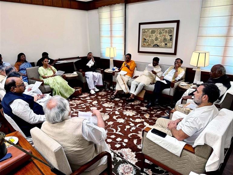 New Delhi: Opposition parties under the INDIA bloc met in the Parliament premises on Thursday to chalk out their strategy for the special session, focusing on their stand on the Women's Reservation Bill and the proposed delimitation Bill. Opposition parties are set to bills, including those on women's reservation and delimitation, in both Houses of Parliament.