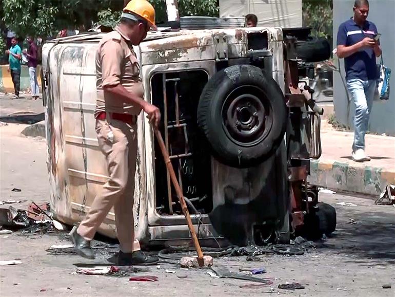 Noida : Uttar Pradesh Police have arrested two people allegedly involved in the workers' protest in Noida that turned violent last week. According to the police, the accused, identified as Himanshu Thakur and Satyam Verma, were involved in inciting activities and violent incidents during the labour demonstration in Noida. The police have registered a case at the Phase 2 police station in connection with the incidents.