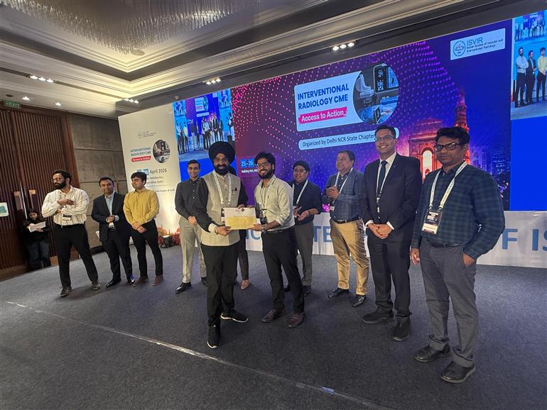 His award-winning presentation, “Safeguarding the Brain: Early Experience with Embolic Protection Devices in Carotid Artery Stenting from the Northern Himalayan Region,” showcased cutting-edge advancements in neurointerventional radiology. The work highlighted how embolic protection devices significantly enhance patient safety and clinical outcomes, reflecting the department’s growing expertise in advanced minimally invasive procedures.