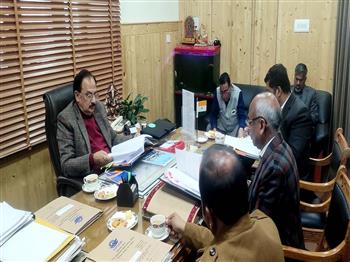 Industries Minister Sh Harshwardhan Chauhan presiding over the 237th board meeting of Himachal Pradesh General Industries Corporation at Shimla today.