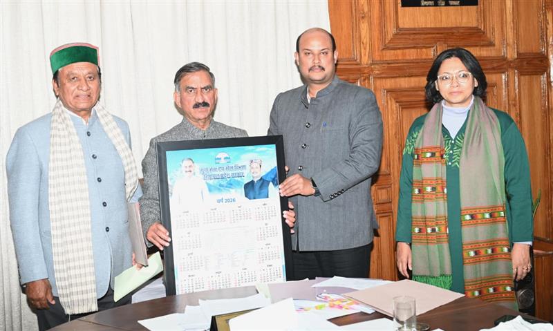 Chief Minister Thakur Sukhvinder Singh Sukhu releasing the calendar-2026 of Youth Services and Sports Department at Shimla on 30th December, 2025. Revenue Minister Jagat Singh and Ayush Minister Yadvinder Goma were also present on the occasion.